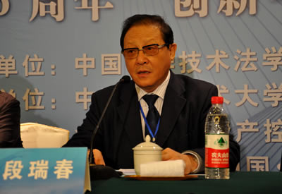 段瑞春会长回顾了中国科学技术法学会成立25年来,在我国科技法制建设、完善、创新的历程中所做的大量工作;他说,来自全国致力于科技法学研究、健全科技法制建设和提升科技法律服务的专家学者相聚一堂,是科技法学界的一次盛会,也是推进创新与法制的重要活动;此次会议将总结科技法学会在过去一年中的实践,将聚焦科技创新与法制建设的主题进行研讨;在国家强调科技兴则国兴,科技强则国家强和新的科技革命和产业更新的背景下,他希望全体同仁借对中国科学技术法学会成立25周年纪念之际,为科学法制建设、为法制与创新、为国家创新驱动的重大战略做出新的贡献,开创新的局面。