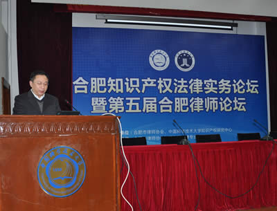 12月8日,由合肥市律师协会和中国科大知识产权研究中心主办、合肥市律师协会知识产权法律专业委员会承办的“首届合肥知识产权法律实务论坛暨第五届合肥律师论坛”在我校举行。我院宋伟院长和合肥市科技局(知识产权局)总工程师赵正应邀作主题演讲;合肥市司法局党委委员、副局长、市律协会长王逸枫,市司法局党委委员、政治部主任张弘,市律师协会常务副会长周世虹,市中级人民法院民三庭庭长,市律师协会副会长宋小林,安徽大学法学院教授吕斌,市律协知识产权法律专业委员会全体委员,论坛论文提交者和来自市属各律师事务所的律师出席了论坛。市律协知识产权法律专业委员会主任沈国庆和中国科大知识产权研究中心主任宋澜共同主持了论坛。