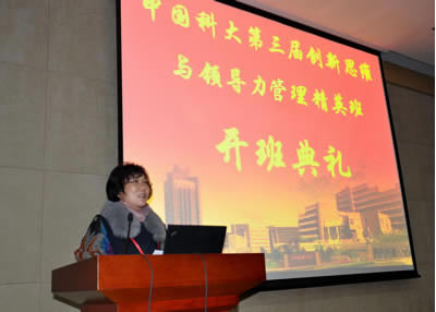 吴成贵会长在讲话中对我院近年来取得的骄人成绩表示高度赞赏,并代表省工商联对研修班的顺利开班表示祝贺,向研修班付出辛勤劳动的我院工作人员表示感谢。他指出我国经济正面临新的转型期,把握新机遇,面对新形势,是企业家和政府面临的共同问题。他要求学员们在研修班的学习过程中要勤于思考,深入学;珍惜时间,认真学;团结有爱,互相学;带着责任和压力努力学习,积极探索新知识,通过在中国科大的培训充电和提速,为政府和企业的又好又快的发展作出新的更大贡献。
