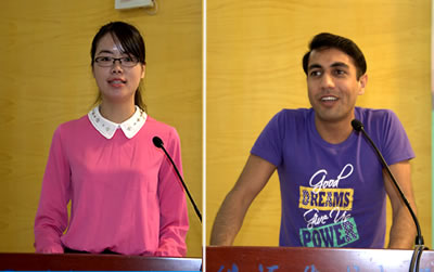 院研究生会副主席张立雪同学作为老生代表欢迎新一届同学们加入院研究生会的大家庭。Waqas Raja同学也代表我院的留学生进行发言,他与新生们分享了自己研究生学习、科研、生活的经验与感悟。博士生连瑞瑞和硕士生程宏昌分别代表新生发言,表达了他们对新的学习生活美好的憧憬和对未来的展望,并表示将在新的起点上奋发前行,努力谱写属于新生代研究生的精彩篇章。