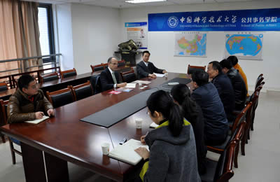 | 12月2日,美国天普大学(Temple University)法学院John Smagula教授在校国际合作部蒋家杰副部长的陪同下来我院洽谈合作。我院宋伟院长、李晓纲书记、国际合作部刘颖华主任、法硕中心宋澜副主任、综合办王强主任参加了本次座谈。 宋伟院长对John Smagula教授的到来表示欢迎。他介绍了我院学科布局、办学特色、高端培训以及国际交流等方面的基本情况。他强调我院重视国际方面的交流合作,希望与天普大学在法学、公共管理、高端培训、教师培养等多领域开展广泛的合作,不断推进两校师生互访,促进两校间的友好合作和共同发展。 John Smagula教授表达了对于未来的合作充满信心和期待,谈到了天普大学与中国科大长期以来良好的合作基础并取得了丰硕的成果。他介绍了天普大学法学院的培养体系和专业研究方向,特别说明了开展的双学位项目,包括研究生层次的“2+1.5”项目、短期培训计划,以及促进交流合作采取的相关举措,并表示希望通过此次来访与我院建立广泛的合作关系,深入开展合作项目。 会谈期间,双方就“2+1.5”双学位合作项目、高端培训、师生互访等进行深入探讨,双方在培训思路、培训模式等方面均达成了共识,合作前景广阔。双方一致同意建立对接机制,推动项目的真正落实,不断推进两校的国际化进程。 ![]() 中国科大与天普大学从2008年开始实施本―硕“3+2”联合培养项目,截至目前已有27名学生分别在天普大学的电子、管理、生命和工程等专业领域学习,并获得了积极的评价和效果。 中国科大公共事务学院 2015-12-04 |
