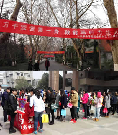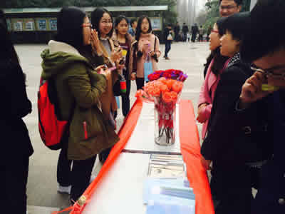 本次活动的主题是:“万千宠爱集一身,鞍前马后为佳人”,围绕活动主题,我院在前期做了充分的准备的宣传。上午十点,院研会的工作人员就来到了活动场地进行会场的布置,为中午十二点的活动提前做好准备,在布置的过程中就要不少同学对我院的活动充满了好奇并前来询问。活动一开始就吸引了很多同学的围观,排起了长队,许多同学踊跃的参与到活动中来,很早就在我院活动场地处等候,活动气氛十分热烈。