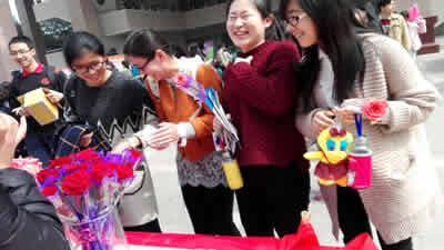 本次活动以服务女生为原则,我院为校女生准备了玫瑰花和文具用品等精美礼物,本次活动的规则是每位女生通过表演歌曲、笑话等方式来赢取礼物,并由研会成员送上鲜花以表示祝福。虽然为广大女同学准备了鲜花、文具等多种多样的奖品,但是从其中,有个人表演赢取礼物,也有以闺蜜、宿舍为单位集体表演,在参与的过程中工作人员也设置了一些小环节,让活动更加的具有趣味性,参与的女同学都充分展示了自己的才艺,感受到了节日的快乐。其中比较亮眼的是一位男同学主动参与进来,演唱了一首好听的闽南语歌曲《爱拼才会赢》来为自己的女朋友赢取礼物,把活动推向了一个高潮。