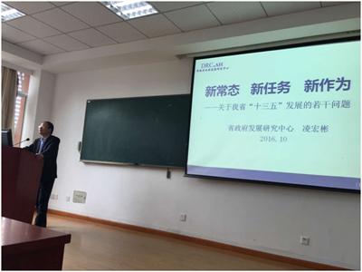| 2016年10月30日,中国科学技术大学公共管理教育中心邀请省政府发展研究中心综合经济研究处处长凌宏彬博士为MPA学员作了题为《新常态新任务新作为――关于我省“十三五”发展的若干问题》的专题讲座。 凌宏斌处长首先分析了 我国“十三五”规划形成的国际国内环境背景、确立的根据和发展着力点,详细地解读了十八届五中全会和“十三五”规划中我国经济保持中高速增长、户籍人口城镇化率加快提高、现行标准下农村贫困人口实现脱贫、实施国家重大创新、等多项内容。指出“十三五”规划体现出五大鲜明特色,是人性化的设计、“以人为本”理论的升级版。随后凌处长以第一手资料,对安徽省“十二五”的发展成就,“十三五”的发展环境、发展理念和目标、主要任务,以及规划实施保障等内容作了详实的介绍。 在报告会的最后阶段,凌宏斌处长特意留了一点时间,与同学们进行了互动交流,现场回答了大家提出的问题。 凌宏彬处长的精彩报告给同学们以深刻的启发和鼓舞。 ![]() 中国科大公共事务学院 2016-11-11 |