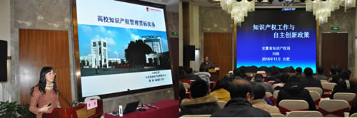 本次培训班议题紧紧围绕高校科技成果转移转化实务和高校知识产权管理规范两方面展开。在高校科技成果转移转化实务方面,邀请到清华大学成果与知识产权管理办公室副主任张友生、安徽省律协知识产权委员会主任韦国、合肥汇众知识产权管理有限公司总经理郑舫挺、北京中金浩资产评估公司安徽分公司运营总监刘慧等,开展了“清华大学科技成果转移转化的创新实践与探索”、“技术转移中法律陷阱与风险防范”、“基于大数据技术的专利质量评价及应用”和“知识产权价值评估助力高校科技成果转化”等讲座。在高校知识产权管理规范务方面,邀请了江苏大学教授江苏省知识产权研究中心主任唐恒和刘栋常务副局长就“高校知识产权管理贯标实务”和“高校知识产权工作与自主创新政策”发表主题演讲。高校是科技人才的源头,但高校科研成果转移转化率不高,发明申请数量低,部分原因是由于科研人员专利申请积极性不高,高校职称晋升重论文轻专利,高校专利价值评估和利益分配存在争议,导致部分好的可以产业化科研成果未申请专利,还有科研人员知识产权意识不强,颠倒了论文发表和专利申请的时间顺序,导致专利新颖性丧失无法申请专利。综合说来,科 技成果转移转化除了加强高校政策的扶持力度和培训宣传以外,还要开展普及知识产权基础教育,让知识产权运用与保护意识植根于全民。