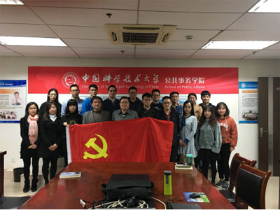 为深入贯彻和学习领会党的十九大精神,切实学懂弄通大会精神,在学校党委的统一安排和部署下,11月14日下午,中共中国科学技术大学公共事务学院委员会研究生第五支部召开以“进入新时代,谱写新华章”为主题的学习会。会议由党支部书记康卫敏同学主持,公共事务学院李晓纲书记、教工党支部书记王忠平老师、党务秘书傅晨、16级公管班主任葛章志以及党支部全体同学参加本次会议。 会议伊始,全体党员重温入党誓词,全体党员在党支部书记康卫敏的带领下,一同高举右拳,面向党旗,庄严宣誓:“我志愿加入中国共产党,拥护党的纲领,遵守党的章程,履行党员义务……。”宣誓铿锵有力,党员们受到了思想上的洗礼,更加坚定了自己的信仰。不忘初心,牢记使命,以更饱满的热情投入到学习和工作中,时刻不忘共产党人的初心就是为人民谋幸福,为中华民族谋复兴。