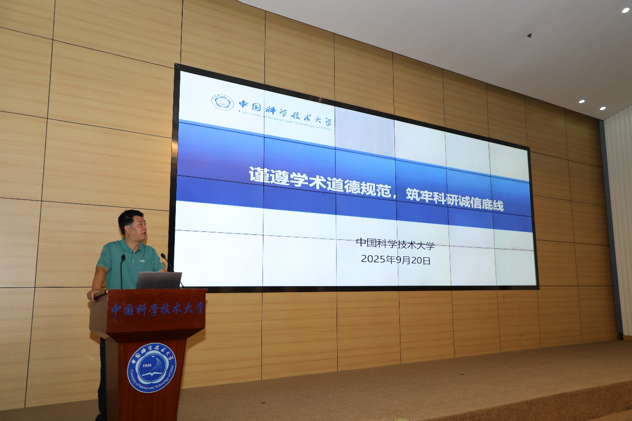 副院长叶五一教授结合学院办学历史、学科布局、师资力量以及人才培养等介绍学院总体情况,并以《谨遵学术道德规范,筑牢科研诚信底线》为题作科研诚信教育。他结合国内外学术不端的典型案例,深入剖析了学术道德的重要性以及科研失信行为带来的严重后果,系统阐述了学术引注、数据真实性、论文署名等关键环节的规范要求,引导同学们从入学之初就树立实事求是的科学精神,恪守学术规范,坚决抵制任何形式的学术不端行为,为今后的学术生涯打下坚实的诚信基础。