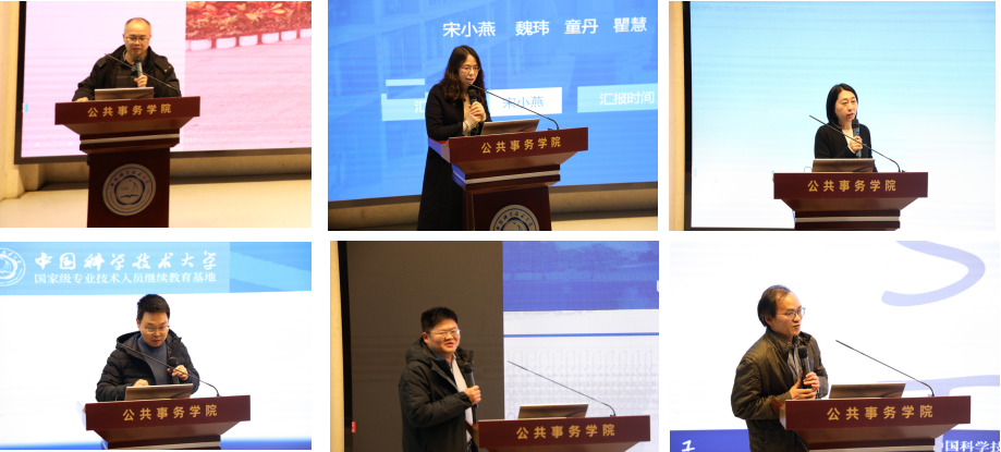 黄胜、宋小燕、刘颖华、周磊、万亮、彭小宝分别代表综合办公室、研究生管理办公室(全日制专业学位管理中心)、科研与人才管理办公室、培训管理办公室、发展与改革办公室、MPA教育中心作部门年度工作汇报交流,梳理回顾2025年学院各项工作取得的进展。