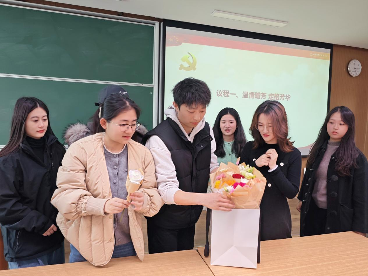活动伊始,支部为每一位女同学送上鲜花与手写祝福卡片。在“榜样领航”环节,全体成员观看《榜样》短片,学习黄文秀、张桂梅等优秀女性先进事迹,感悟她们的赤诚初心与担当精神。同学们纷纷表示要以榜样为镜,在公共管理实践中贡献巾帼智慧。